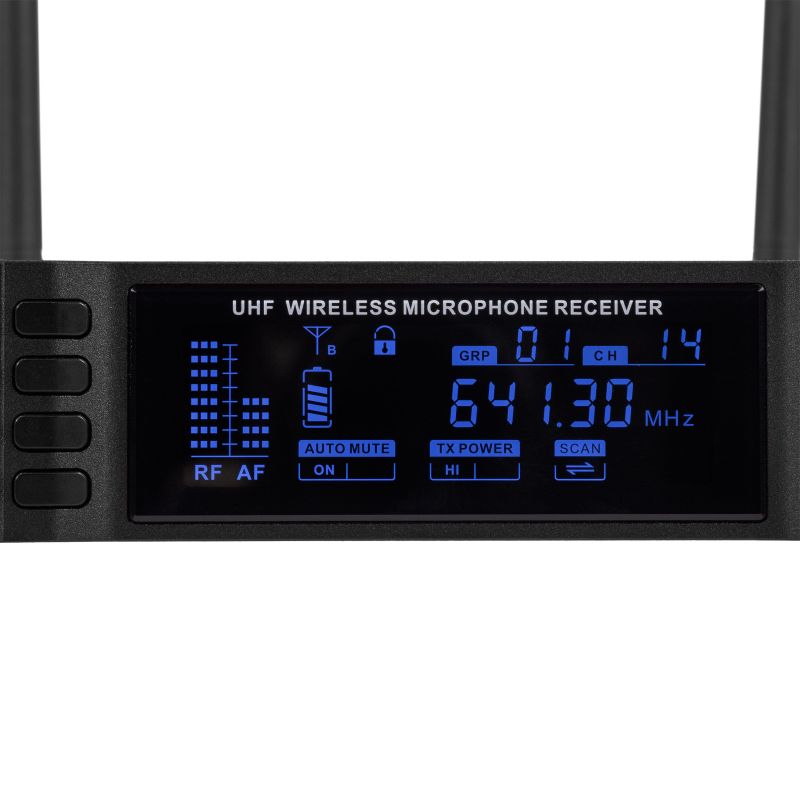 Livré en mallette alu comprenant : • 1 micro main • 1 récepteur • 2 × piles AA 1,5 V • 1 câble jack 6,35 mm mono (1 m) • 1 adaptateur secteur pour récepteur • 1 kit de rackage avec déport d’antennes façade • 2 clés de verrouillage de la mallette